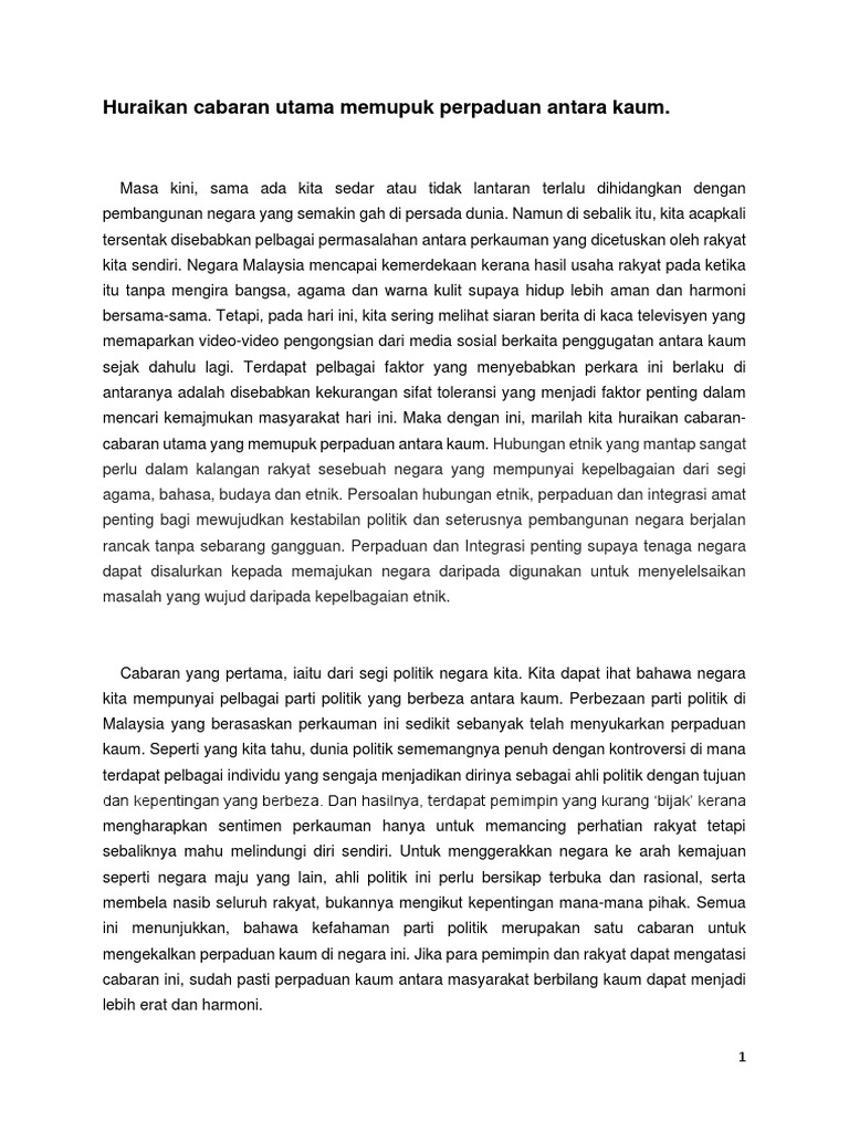 Cabaran Mengekalkan Perpaduan Kaum Pdf